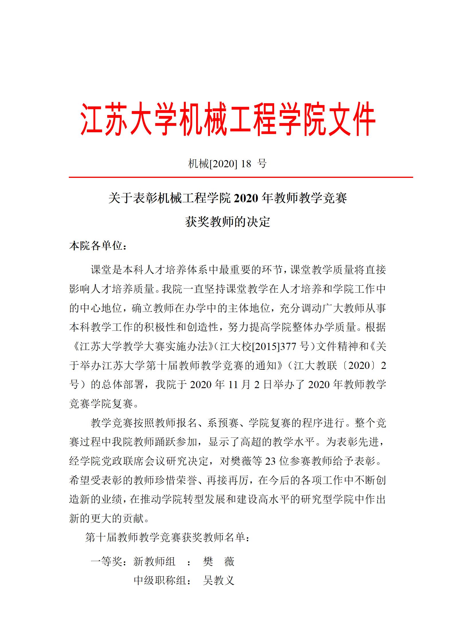 关于表彰88038威尼斯2020年教师教学竞赛获奖教师的决定