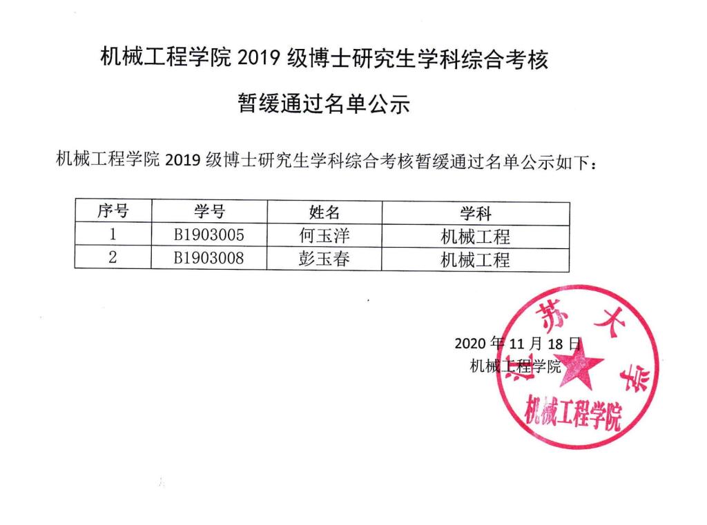 88038威尼斯2019级博士研究生学科综合考核暂缓通过名单公示如下: