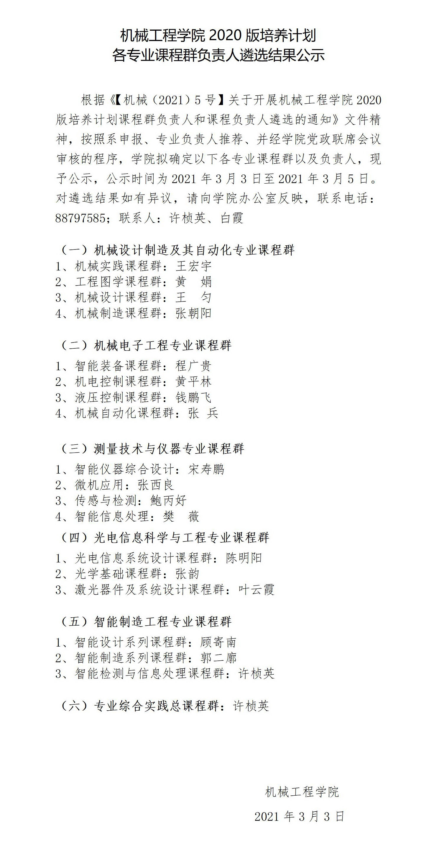 88038威尼斯2020版培养计划各专业课程群负责人遴选结果公示