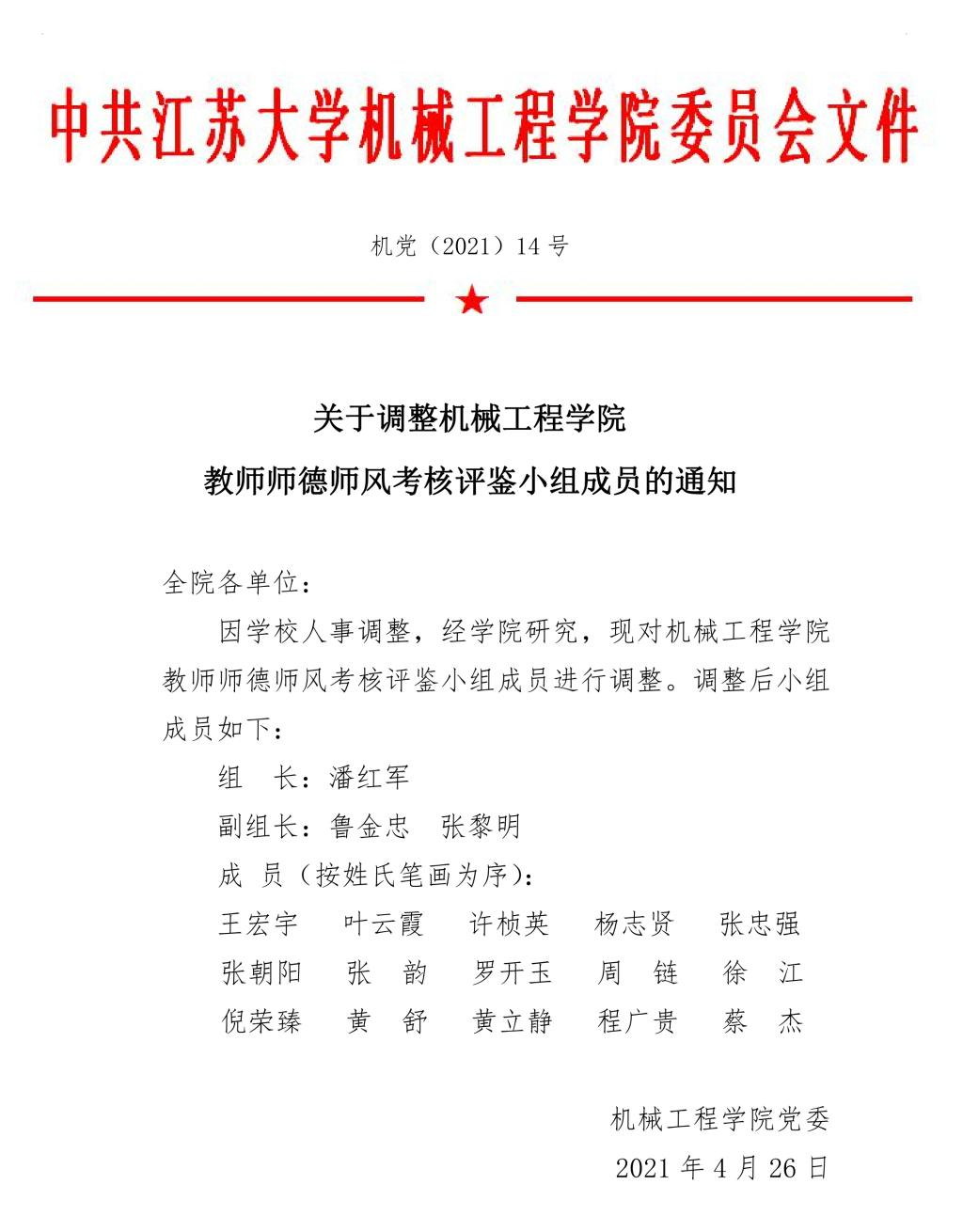 关于调整88038威尼斯教师师德师风考核评鉴小组的通知